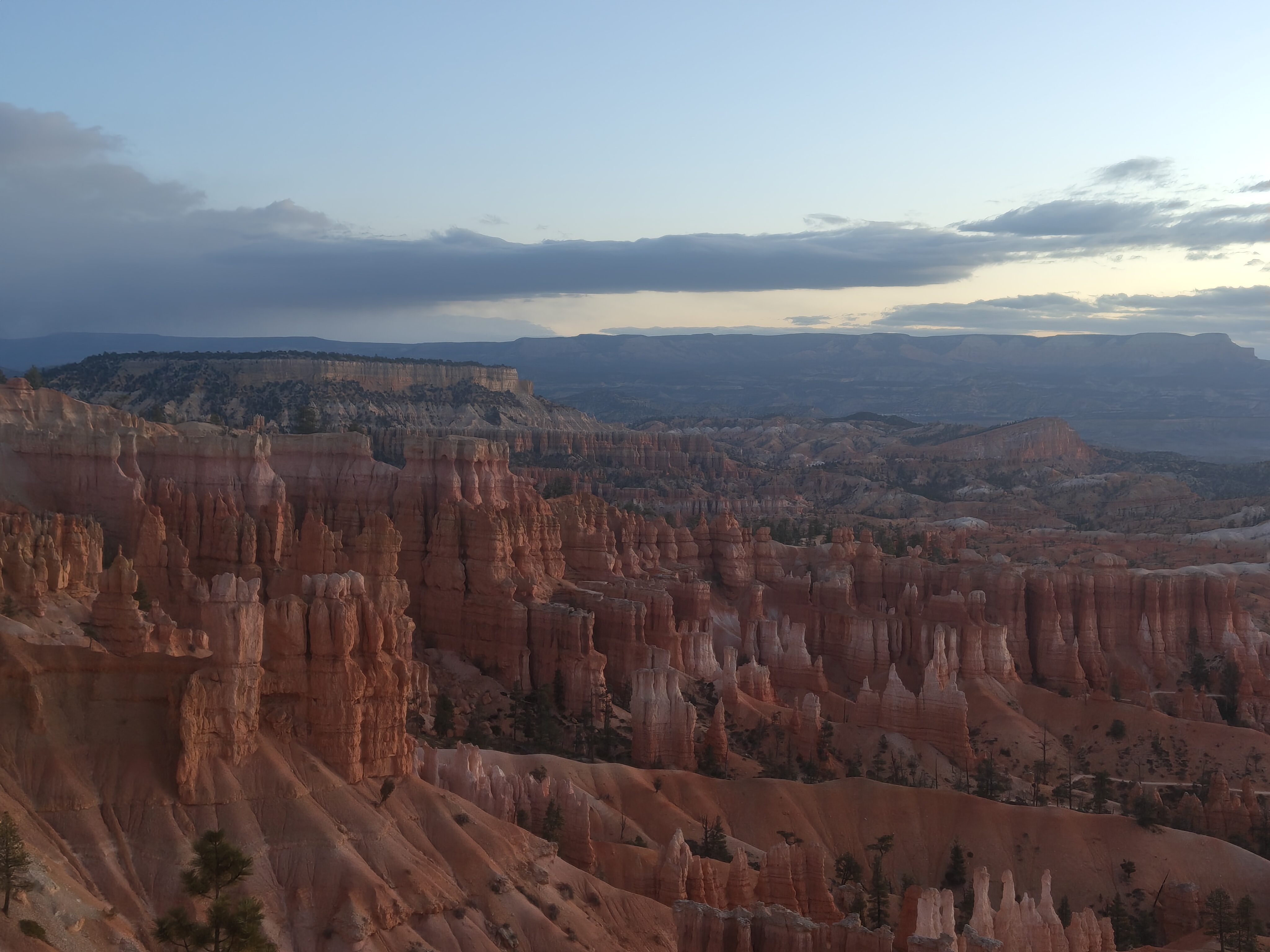 Het volgende park dat we aandeden was Bryce Canyon National Park. We verbleven op een campground iets buiten het park. 's Ochtends voor de zon op kwam begaven we ons naar het hoogste punt om de zonsopkomst mee te maken. De Bryce Canyon is een betoverend park met prachtige rotsformaties, die door de jaren heen helemaal uitgesleten zijn door erosie