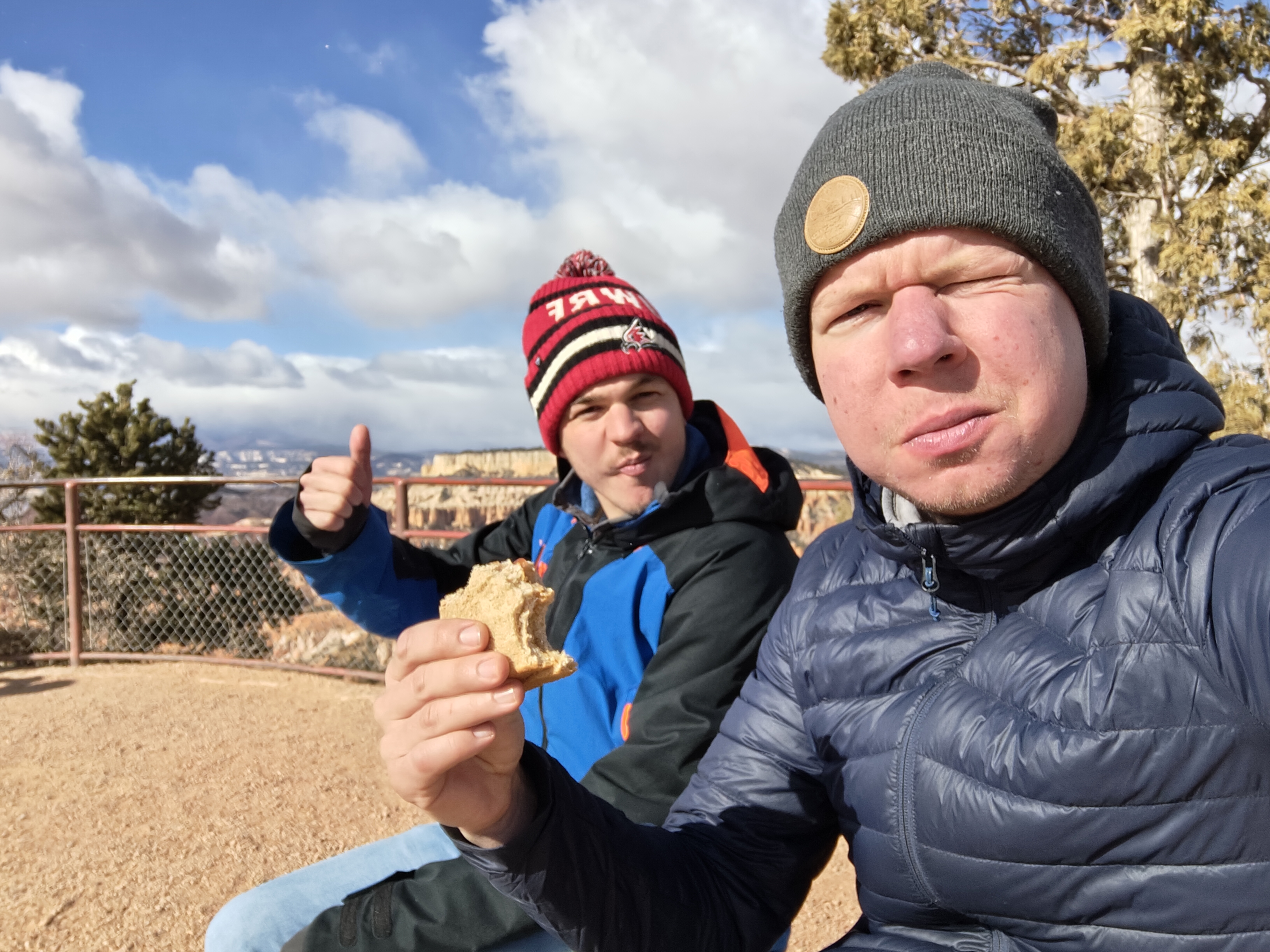 Aan het eind van de dag zetten we onze reis voort richting Moab. Omdat de campsites net zo duur zijn als de hotels (en het 's nachts behoorlijk vroor, en we geen verwarming hadden) besloten we om een nachtje in een hotel te verblijven.