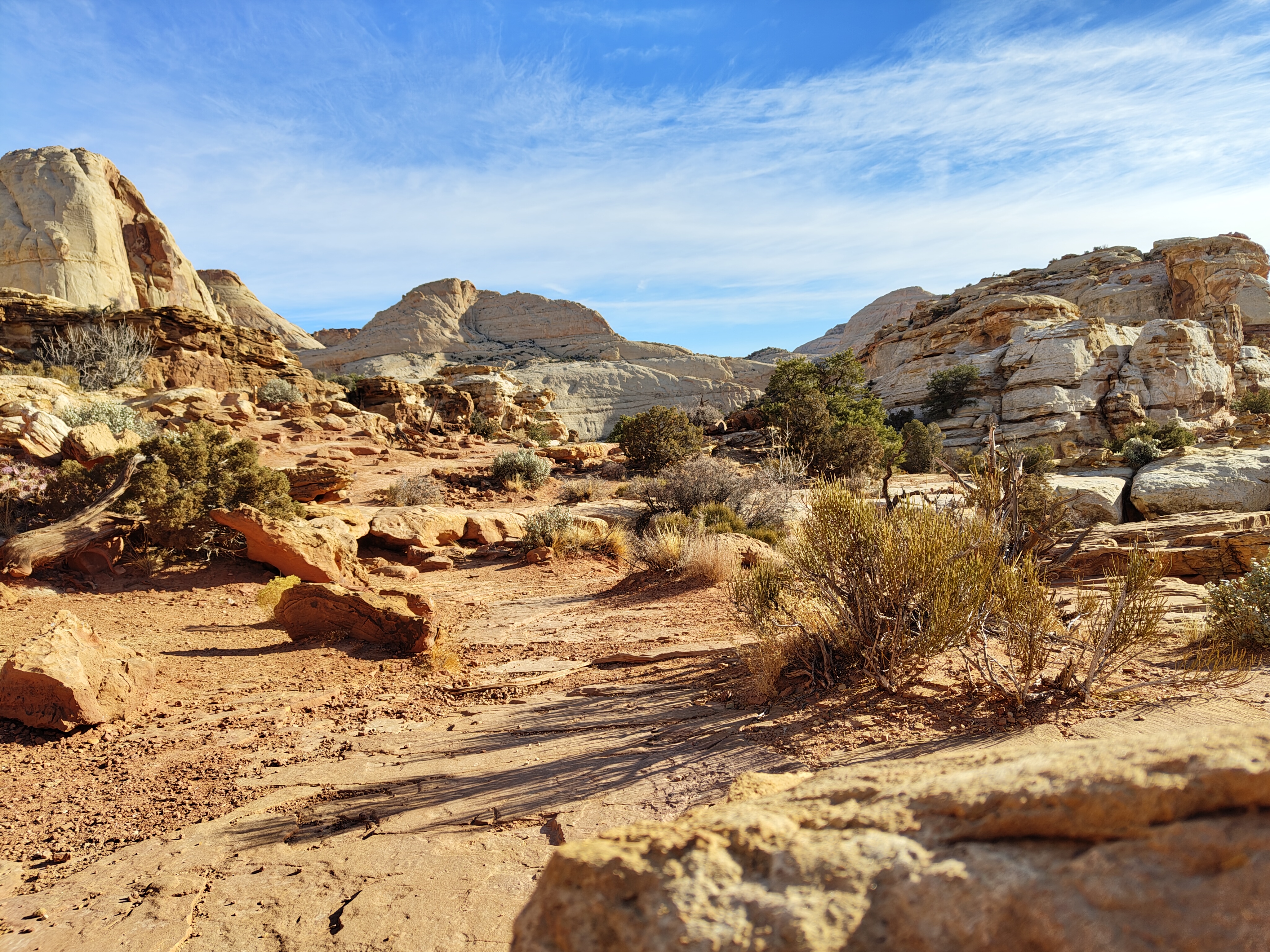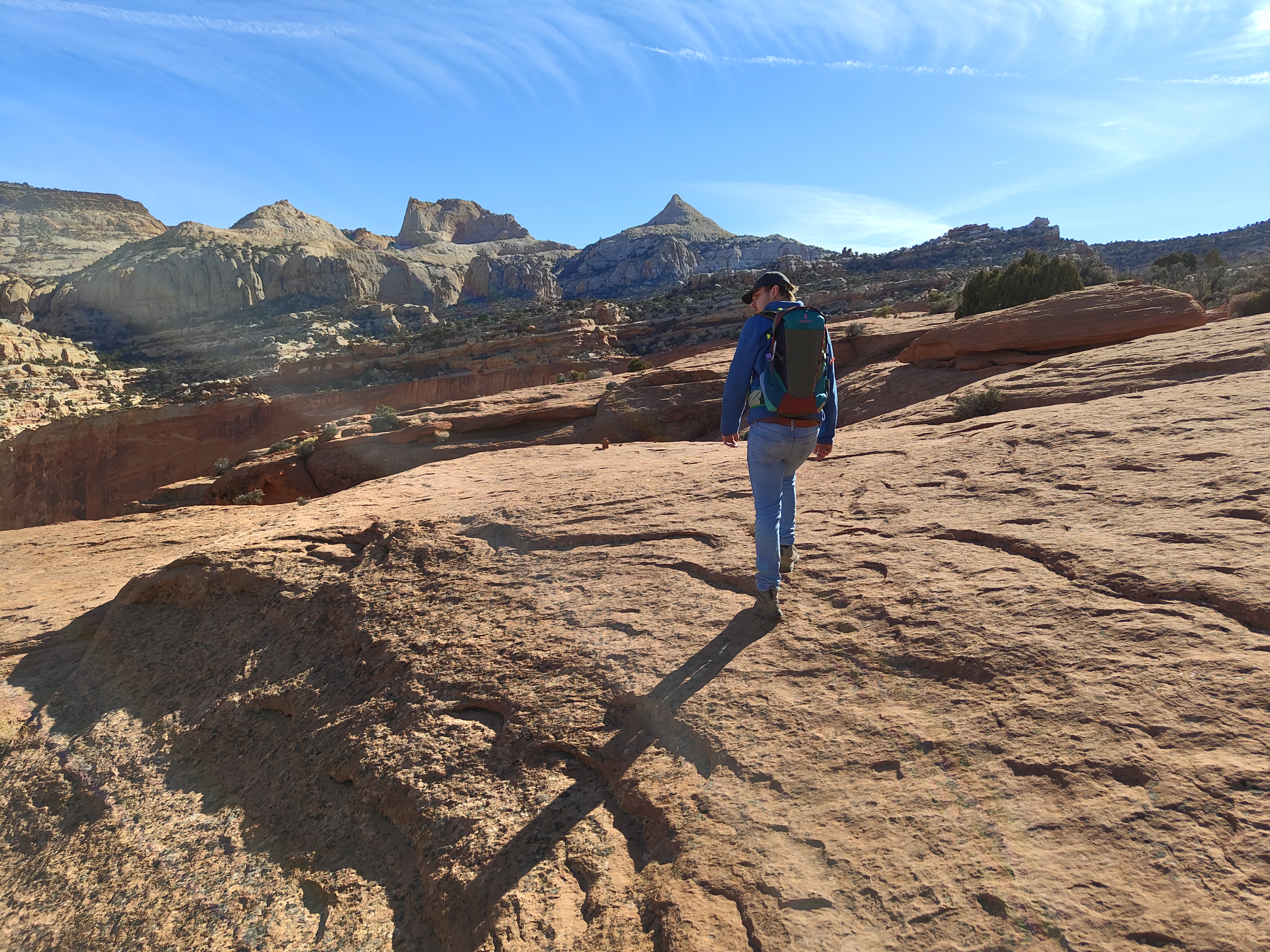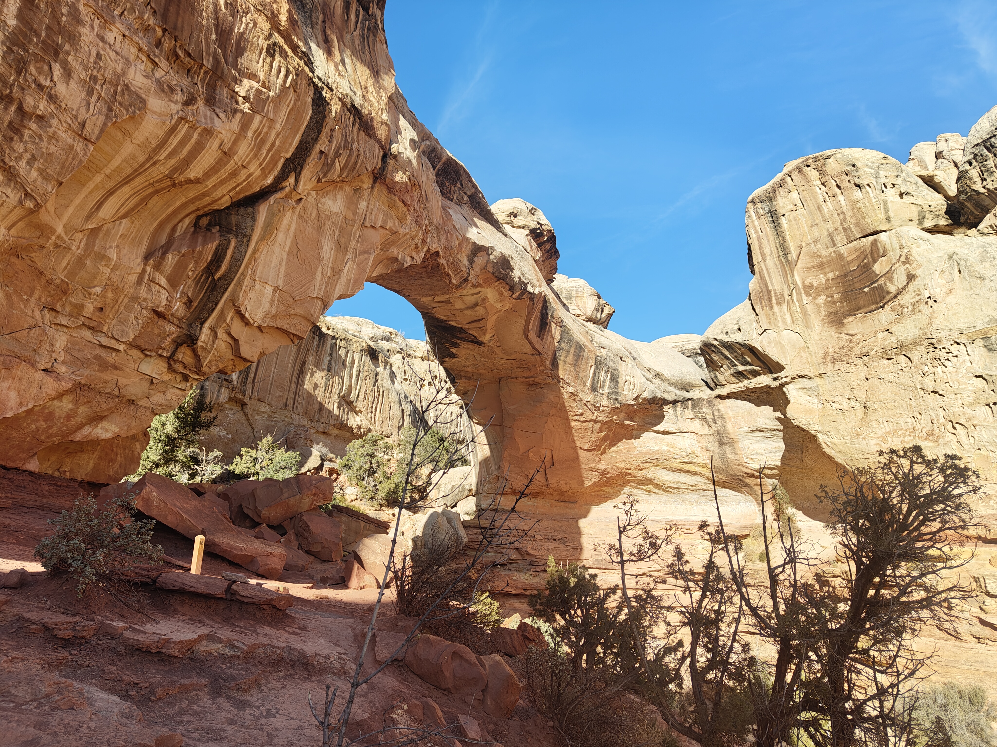 Het Capitol Reef National Park is vernoemd naar het Capitool. Als je goed kijkt zou je het capitol moeten kunnen herkennen in één van de bolvormige rotsen. Bij het binnen gaan van elke National Park wordt je voorzien van een uitgebreide kaart met informatie en wandelroutes