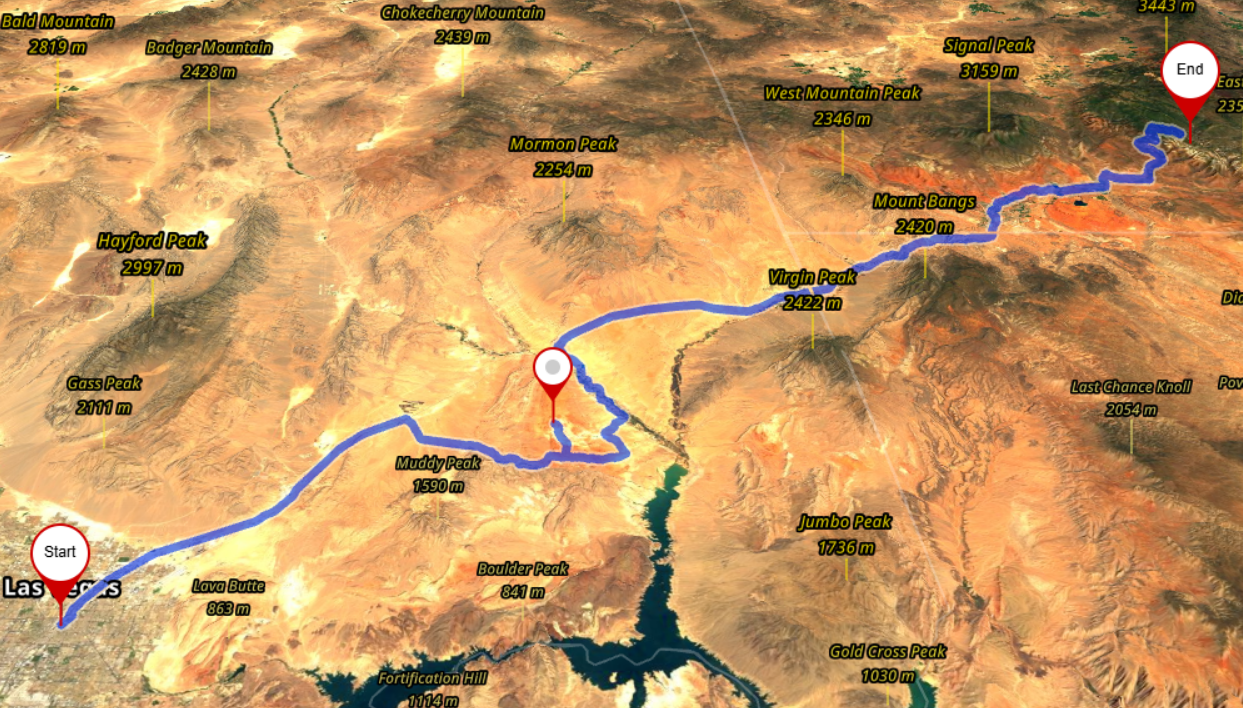 Rond een uur of zeven ’s avonds landde het vliegtuig eindelijk in Las Vegas. Mees was al eerder aangekomen, had de camper opgehaald en stond me op te wachten op de parkeerplaats van het vliegveld. Spullen erin, deuren dicht en meteen door op zoek naar een plek om te overnachten.