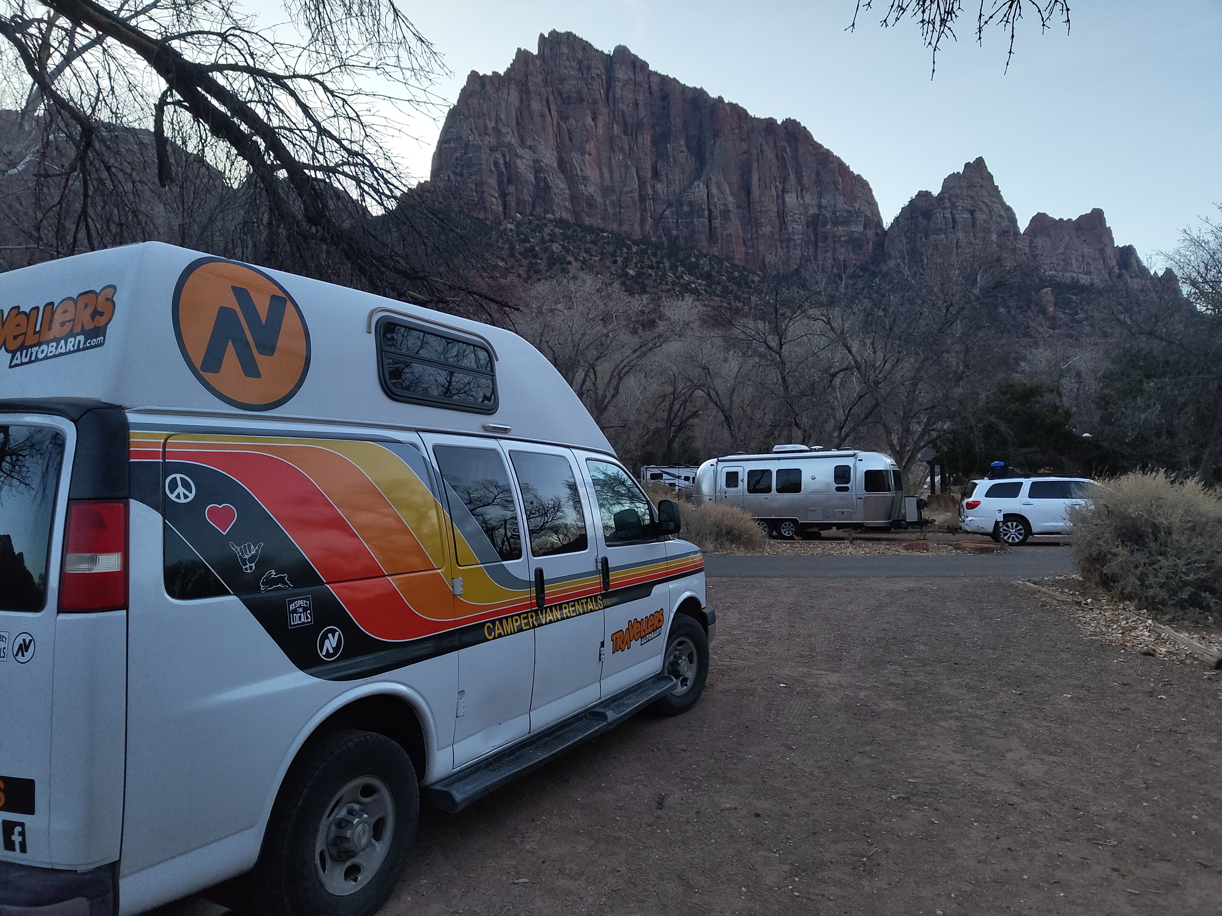 De afgelopen nacht was behoorlijk fris, maar gelukkig deed de kachel zijn werk perfect. We stonden op tijd op om een Annual Pass te halen, waarmee je toegang krijgt tot alle nationale parken. Ondanks dat het winter was, bleek het in Zion National Park verrassend druk. Dat is niet zo gek: het park is relatief eenvoudig te bereiken vanuit Las Vegas.